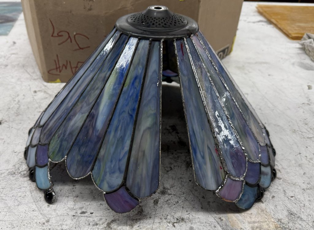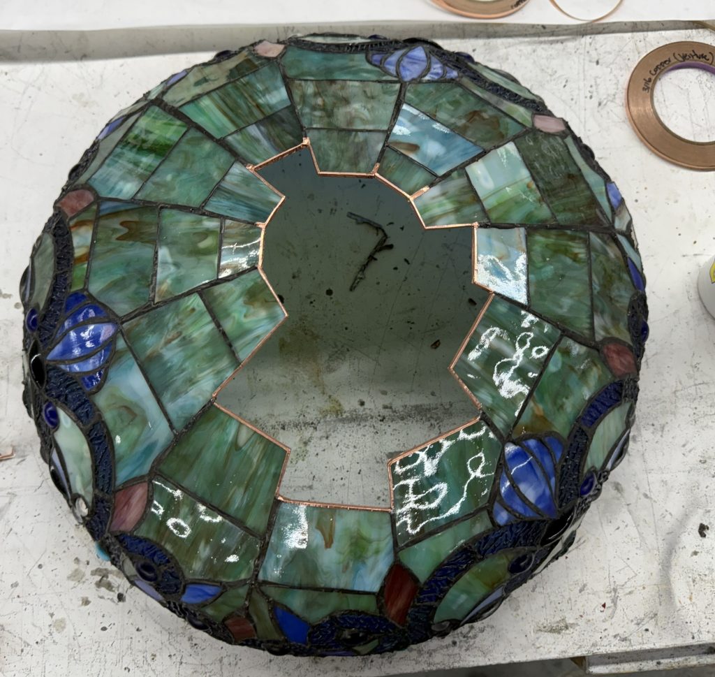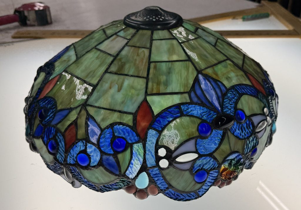 I’ve completed repairs on lamps, panels, small and large freehanging pieces, leaded or zinc panels, and everything in between.